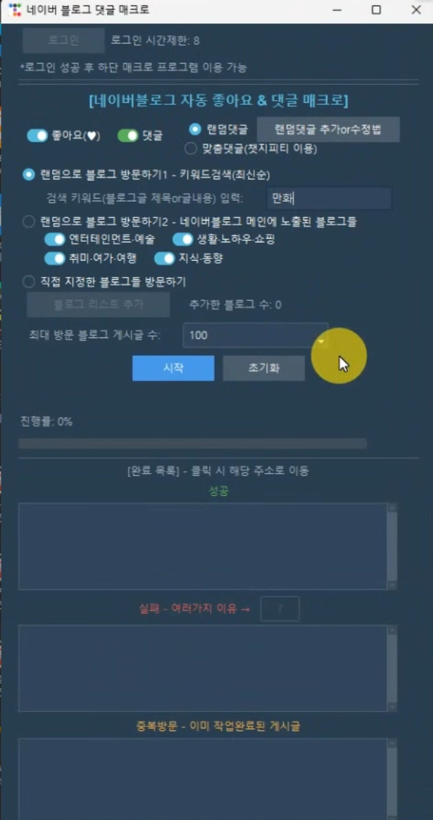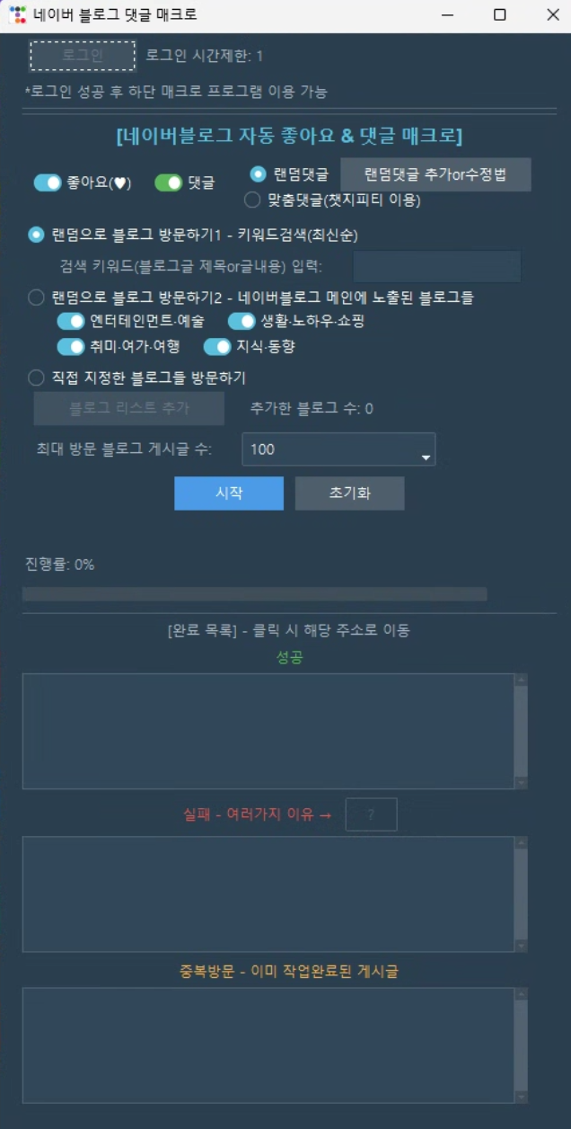 1. 랜덤으로 블로그 방문하기1 - 키워드 검색으로 (좋아요 or 댓글 or 둘다)