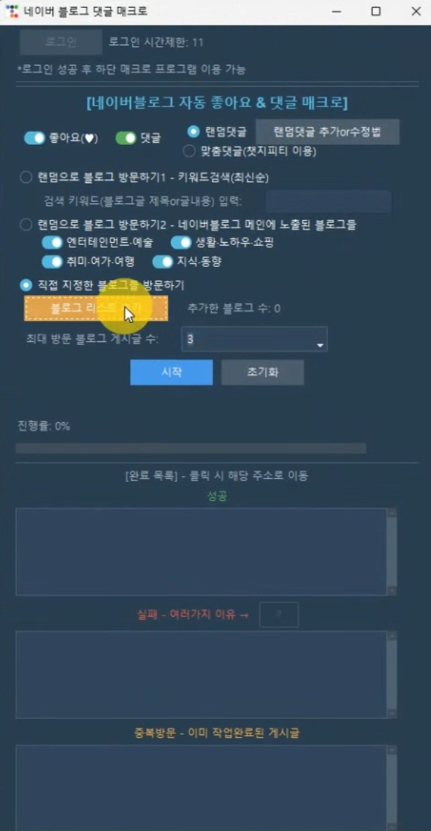 3. 방문할 블로그들 직접 지정하기 (좋아요 or 댓글 or 둘다)