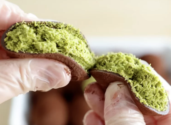 마시멜로우 반죽으로 피스타치오 필링 감싸기
