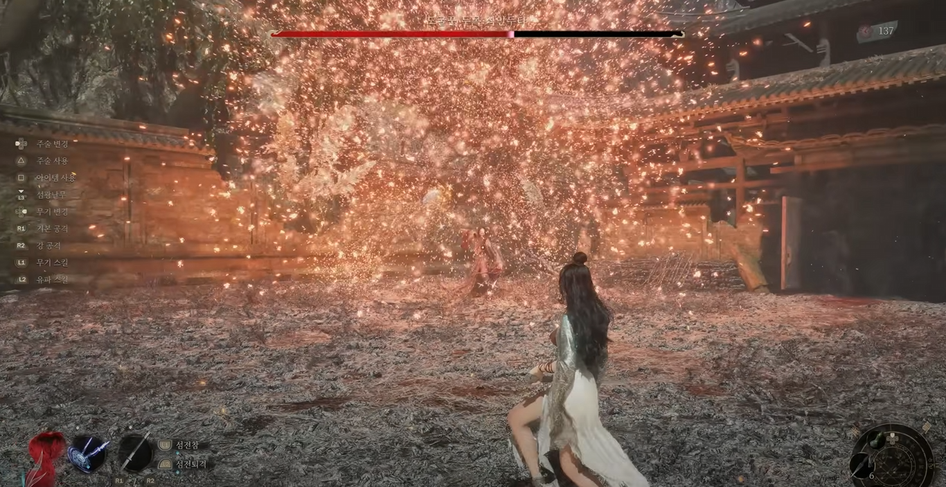 신마 시스템: 인간형 적에게 피해를 주면 신마 수치가 쌓이며 일시적인 강화 효과를 받고, 사망 시에는 신마 강림 보스가 생성되어 이를 처치해야 잃은 경험치와 업그레이드 자원을 회수할 수 있다. 타격감과 연출: 피니시 모션은 묵직하고 무협 특유의 궤적 이펙트가 인상적이다. 주인공 외형은 도발적 디자인을 택해 시각적 인상을 강하게 남기며, 일부 연출은 스텔라 블레이드를 연상시킨다. 🗡️🔥