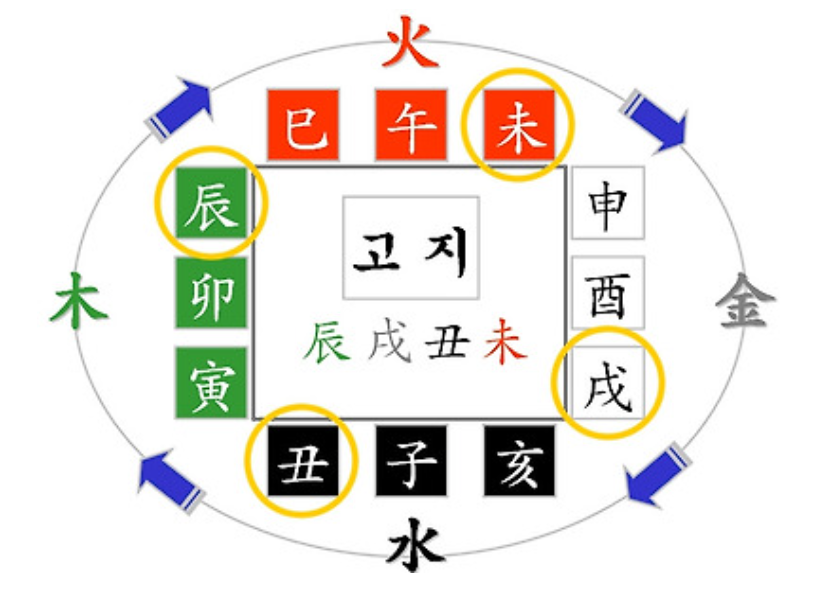 축토(丑) · 진토(辰) · 미토(未) · 술토(戌)