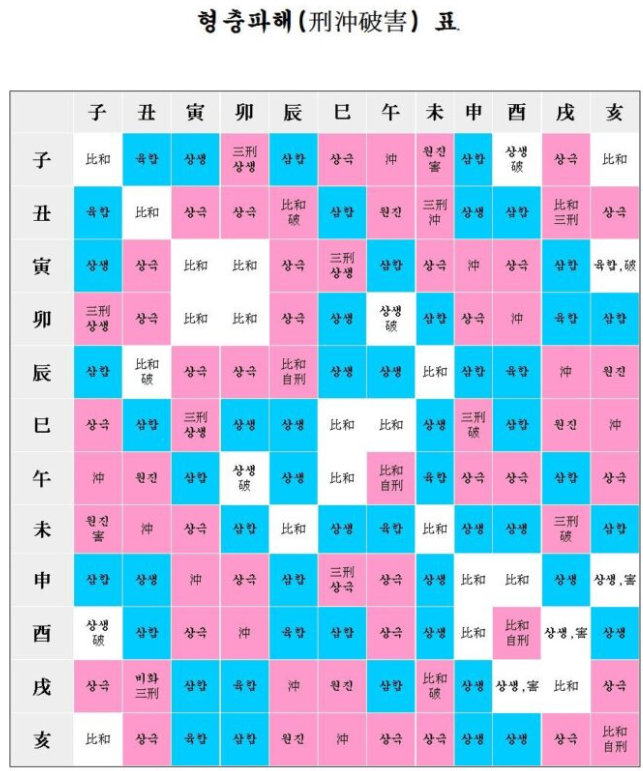 👉 방합(方合), 삼합(三合), 육합(六合), 암합(暗合), 형충파해(刑沖破害) 를 한눈에 정리해볼게요.