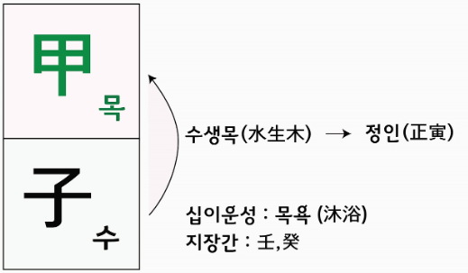 자수(水)가 갑목(木)을 생, 갑목은 성장의 힘을 얻음