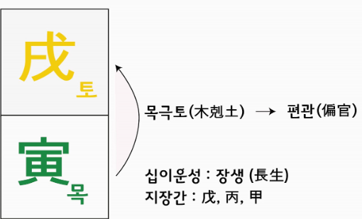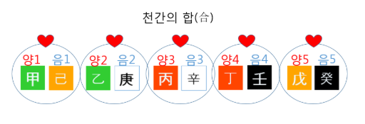 - 약한 천간이 강한 천간과 합하면 보호받는 구조