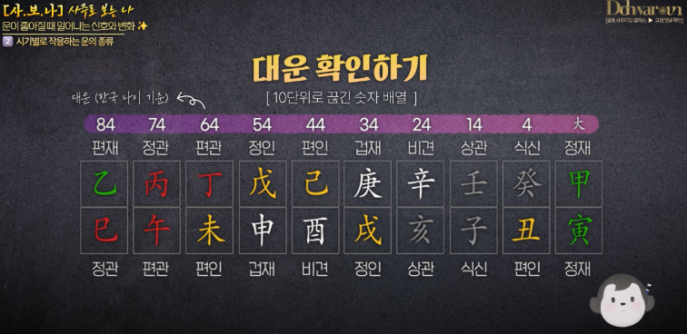 대운은 10년 단위이기 때문에 인생의 큰 틀을 좌우합니다.