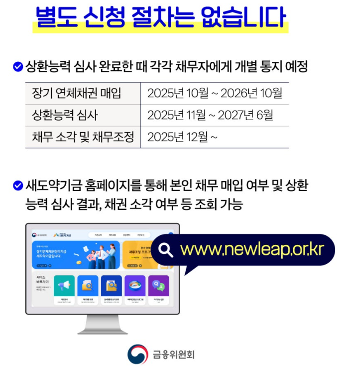 장기 연체채권 매입은 2025년 10월부터 2026년 10월까지 진행되며,