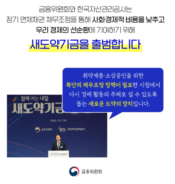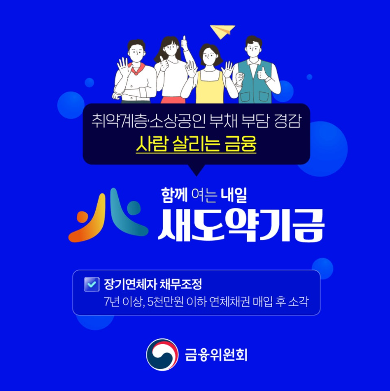 🔖새도약기금 🔖채무조정 🔖취약계층지원 🔖소상공인지원 🔖채무소각 🔖연체채권매입 🔖서민금융 🔖보이스피싱주의 🔖채무감면 🔖재기지원 🔖상환능력심사 🔖분할상환 🔖저금리대출 🔖경제선순환 🔖새도약정책