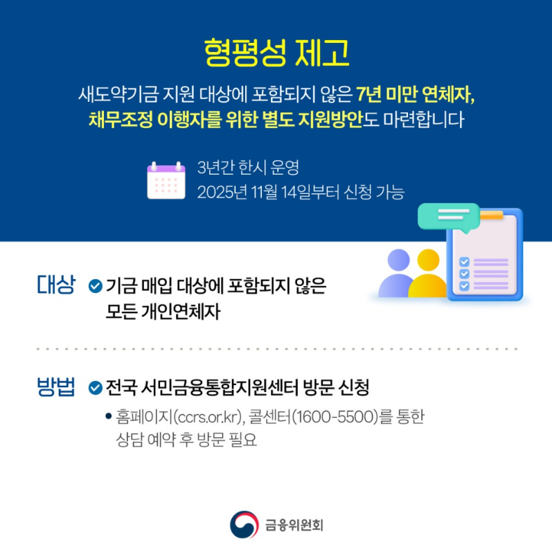 2025년 11월 14일부터 전국 서민금융통합지원센터 방문 신청이 가능하다.