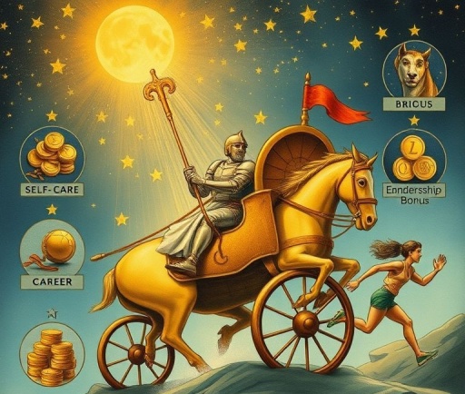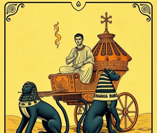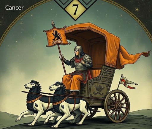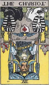 칸서(게자리)와 연결되는 전차는 내면의 감정 에너지를 의지로 전환하는 과정을 보여준다.
