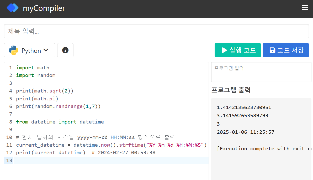 수학적인 계산 기능이 필요하다면 math라는 모듈을 불러와서 사용하시면 됩니다.