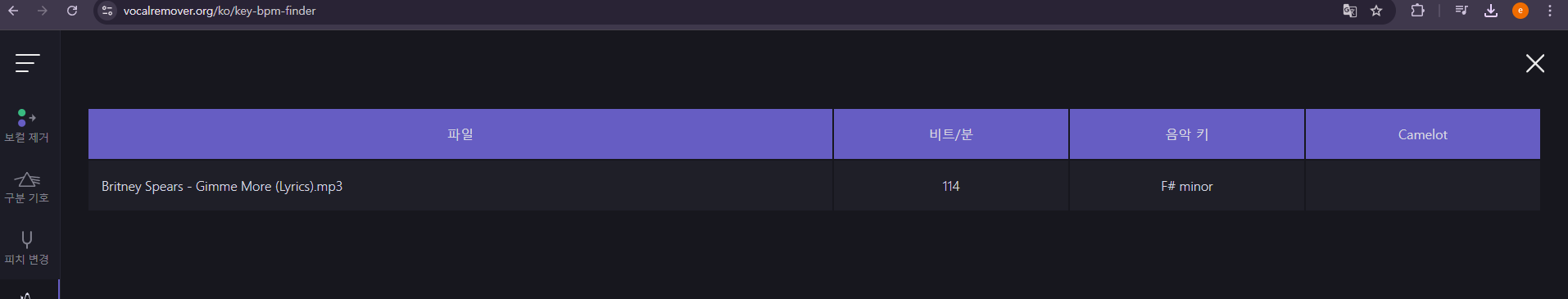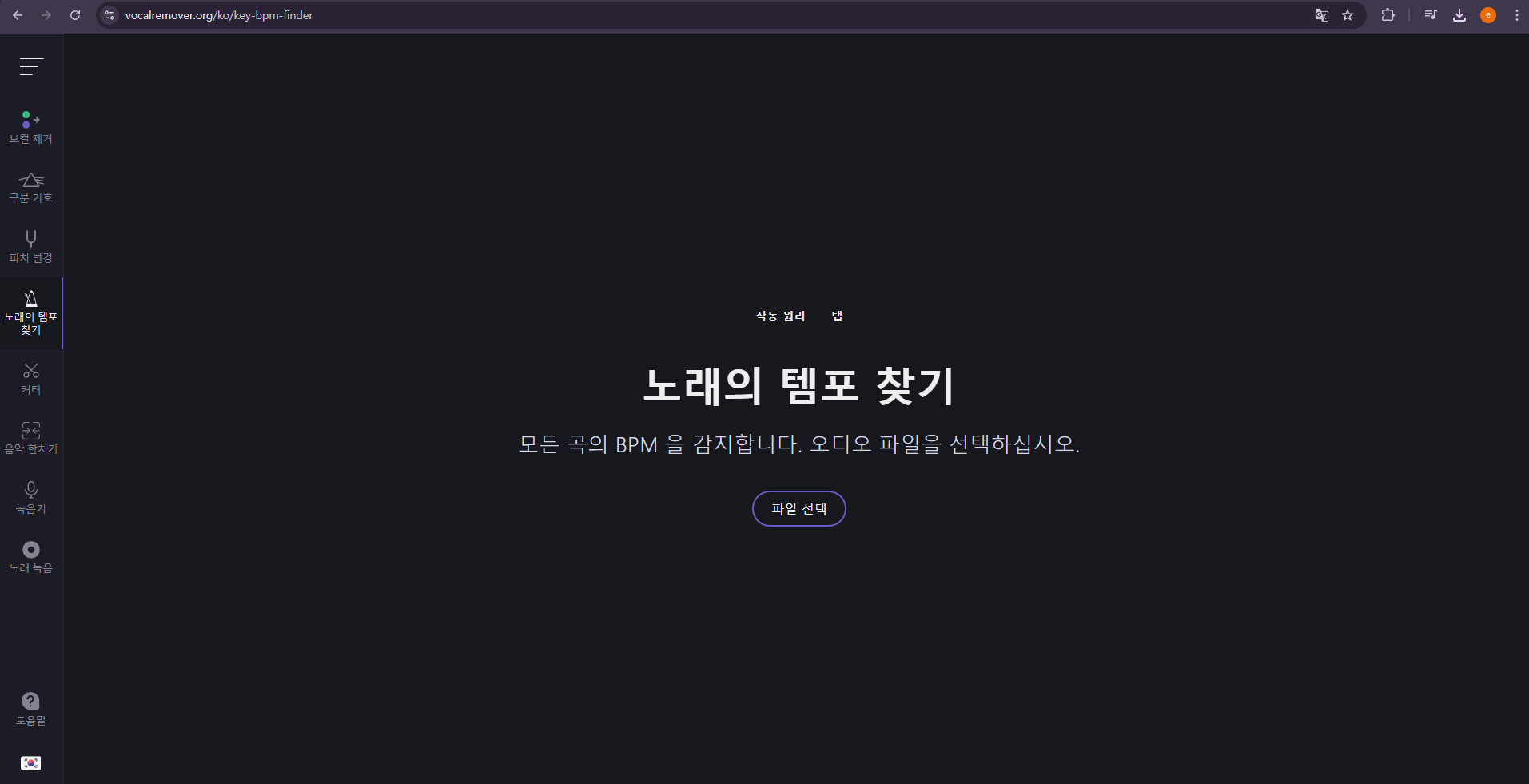 음원(mp3파일)파일을 https://vocalremover.org/ko/key-bpm-finder 사이트에 넣고 bpm을 확인합니다