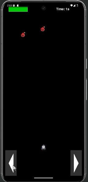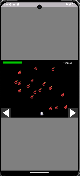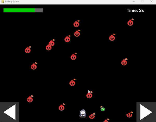 1) 화면에서 맨 좌측에 ◀버튼이랑 맨 우측에는 ▶ 버튼 만들어서 그걸 누르면 키보드 왼쪽버튼이랑 오른쪽버튼 누른거랑 똑같게 진행되게 해줘. (이걸 위해서는 장애물이나 포션 떨어지는 위치가 ◀버튼, ▶ 버튼있는쪽은 피해서 가운데부분에만 떨어지게 해줘야겠지?