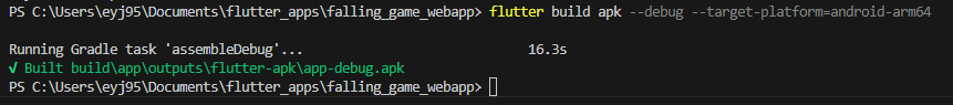 flutter build apk --debug --target-platform=android-arm64