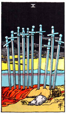 검 10번은 극단적 종말, 배신, 혹은 예상치 못한 파국을 의미합니다.