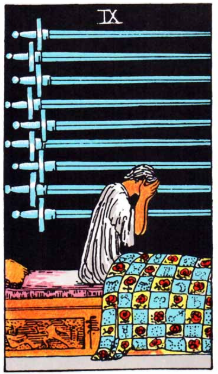 검 9번은 불면, 후회, 과도한 자기반추를 상징합니다.