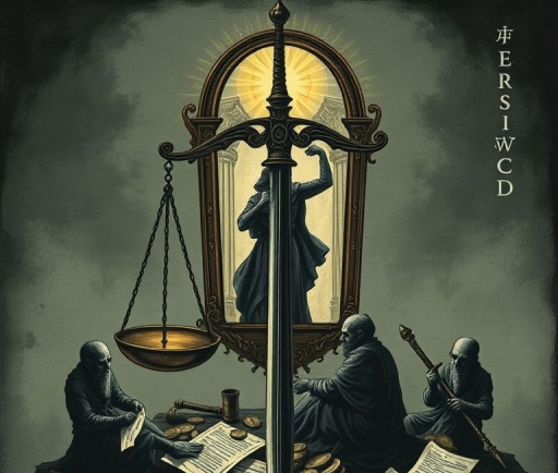 금빛 저울은 부와 권력도 법 앞에서는 평등해야 한다는 도덕적 명제를 환기시킨다.