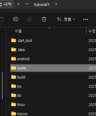 이미지 위젯은 코딩 전에 먼저 해당 프로젝트 폴더 내에 assets이라는 폴더를 만들고