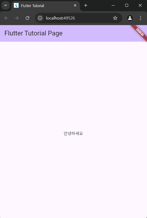 타이틀의 text로는 MyApp클래스에서 넘겨준 인자인 title변수를 씁니다. ("Flutter Tutorial Page")