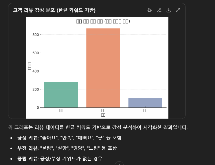 이런 분석을 통해 단순히 리뷰를 읽는 것을 넘어, 숫자와 시각자료로 인사이트를 뽑아낼 수 있겠죠? 😎