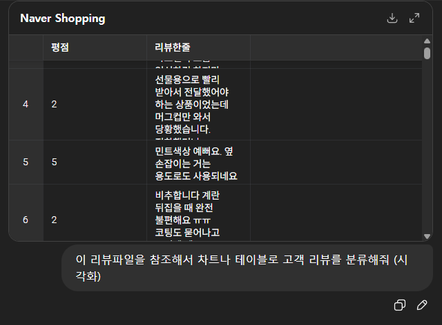 위 질문시 첨부했던 네이버쇼핑 리뷰파일 첨부합니다)