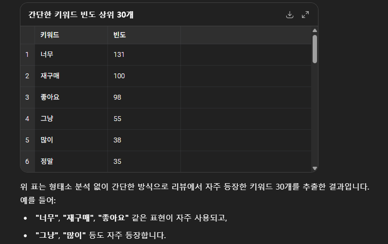 단어 빈도까지 포함해서 보여주니 마케팅 키워드를 정리할 때 정말 유용해요!