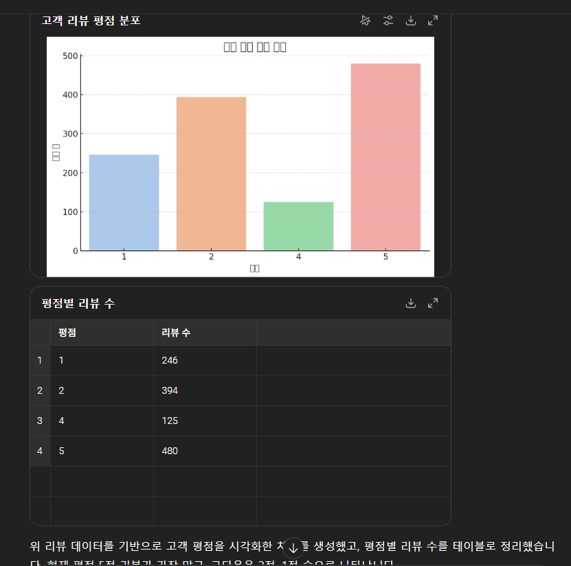 🧠 GPT 답변) 리뷰 평점 분석 후 표 및 차트 생성