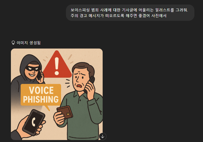 👉 “보이스피싱 범죄 사례에 어울리는 경고 일러스트를 만들어줘”