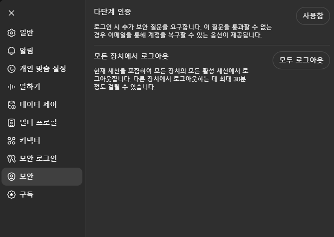 - 모든 장치에서 로그아웃: 접속 이력을 초기화