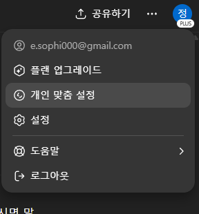 - 챗지피티 우측 상단의 계정 아이콘 클릭
