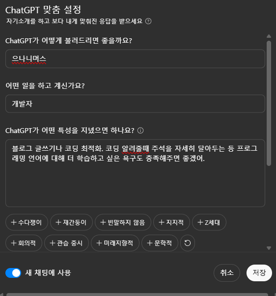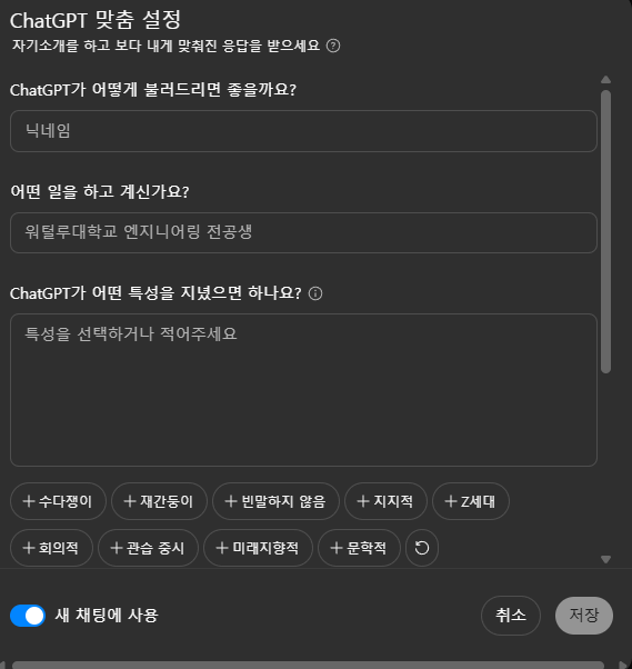 오늘부터 꼭 설정해보고 더 똑똑하게 챗지피티를 활용해보세요! 😊