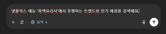 “넷플릭스 예능 ‘흑백요리사’에서 유행하는 트렌드와 인기 배경을 검색해줘.”