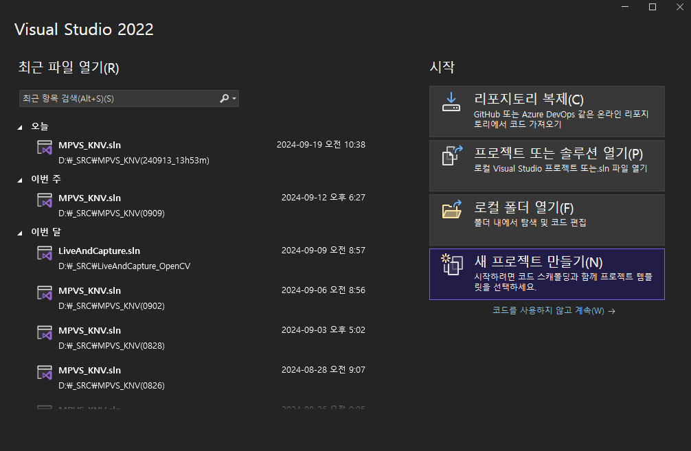 다운로드가 끝났으면 Visual Studio 2022를 연다.