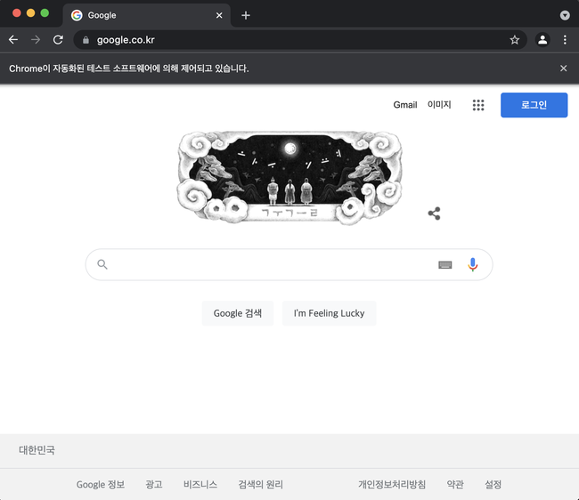 <크롬 드라이버로 구글 웹페이지에 접속한 상태>